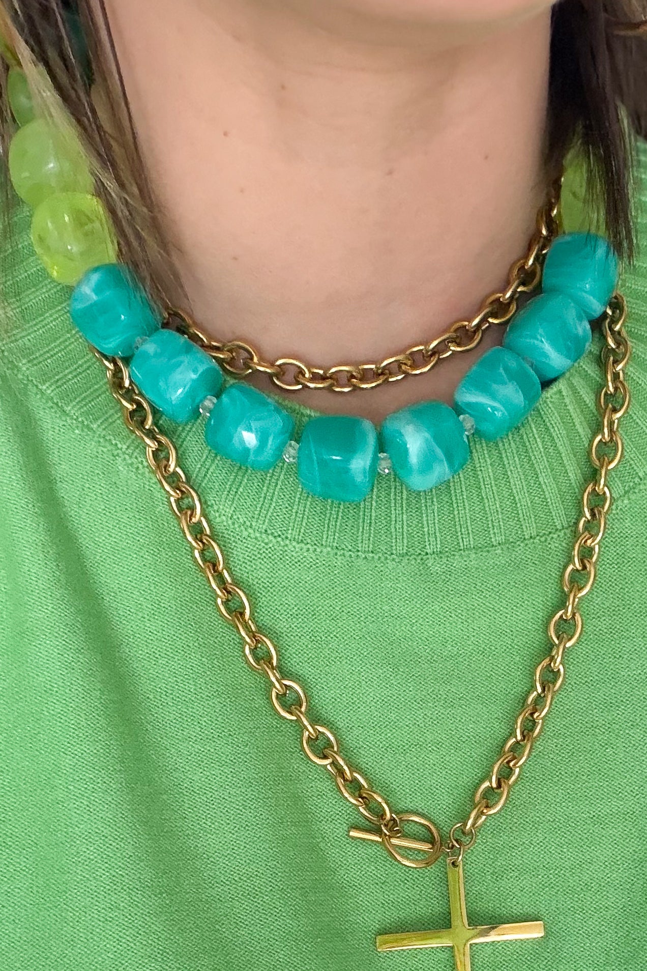 Green + Turquoise Square Beaded Necklace