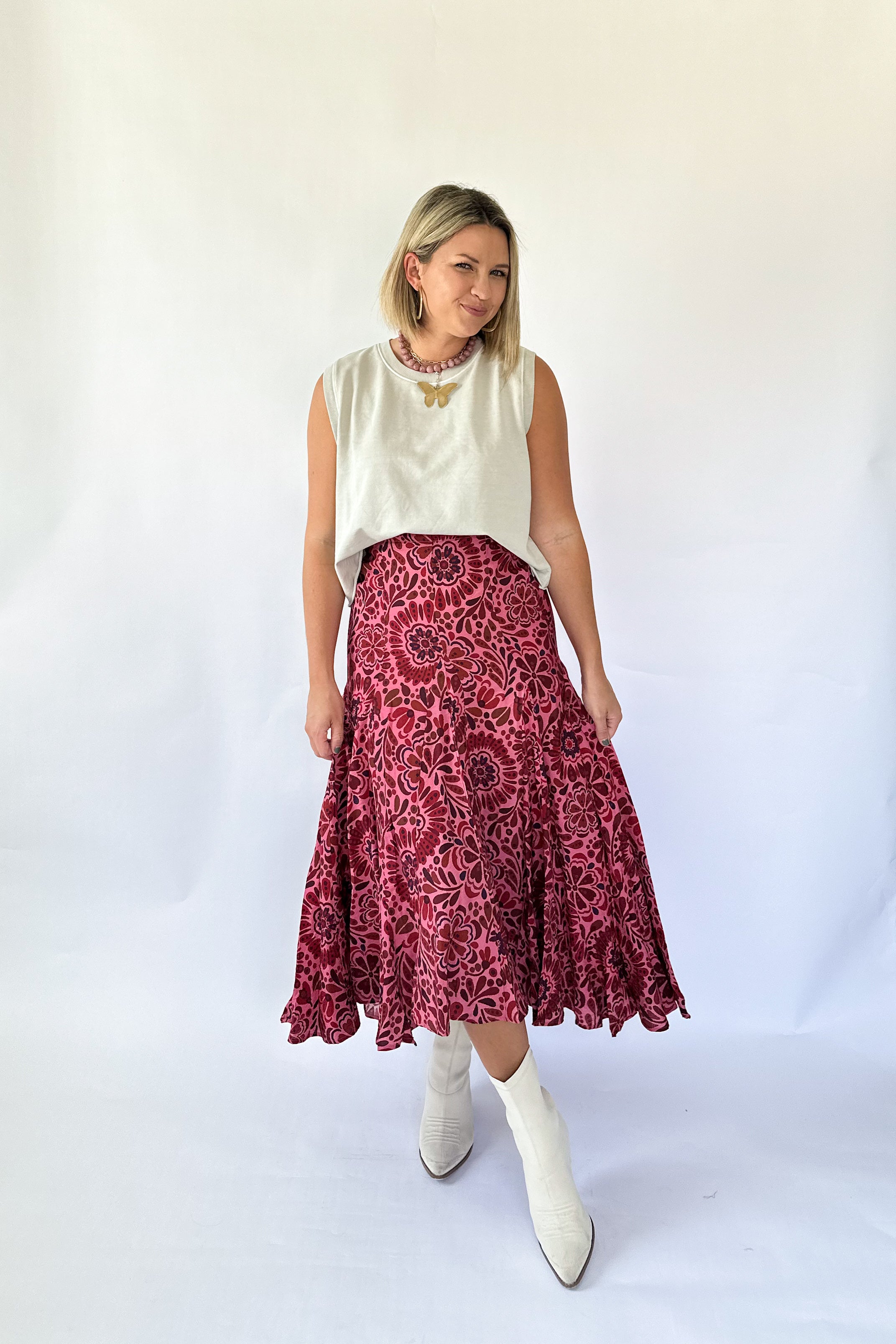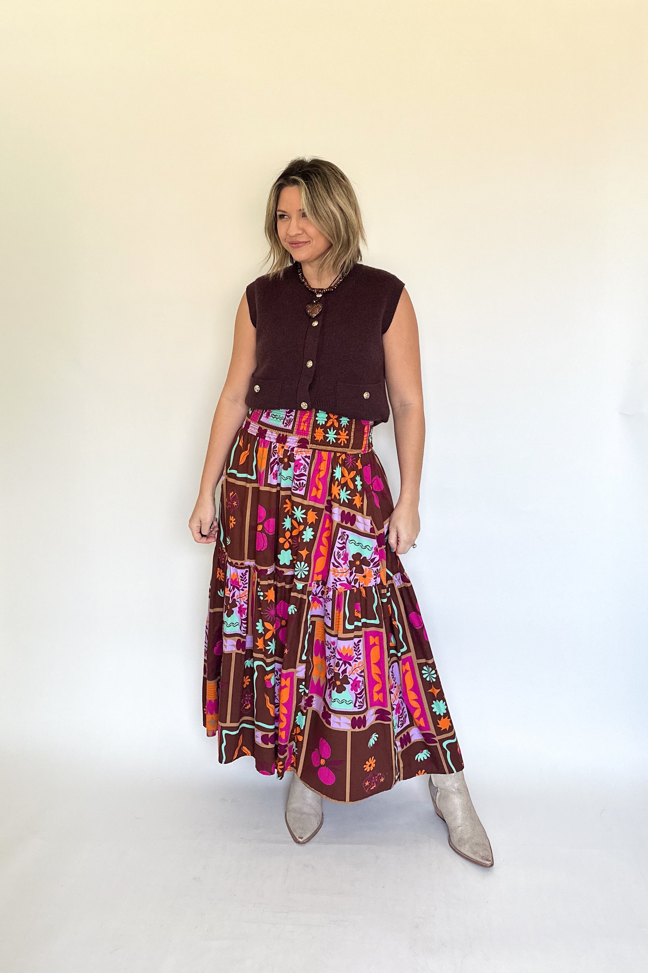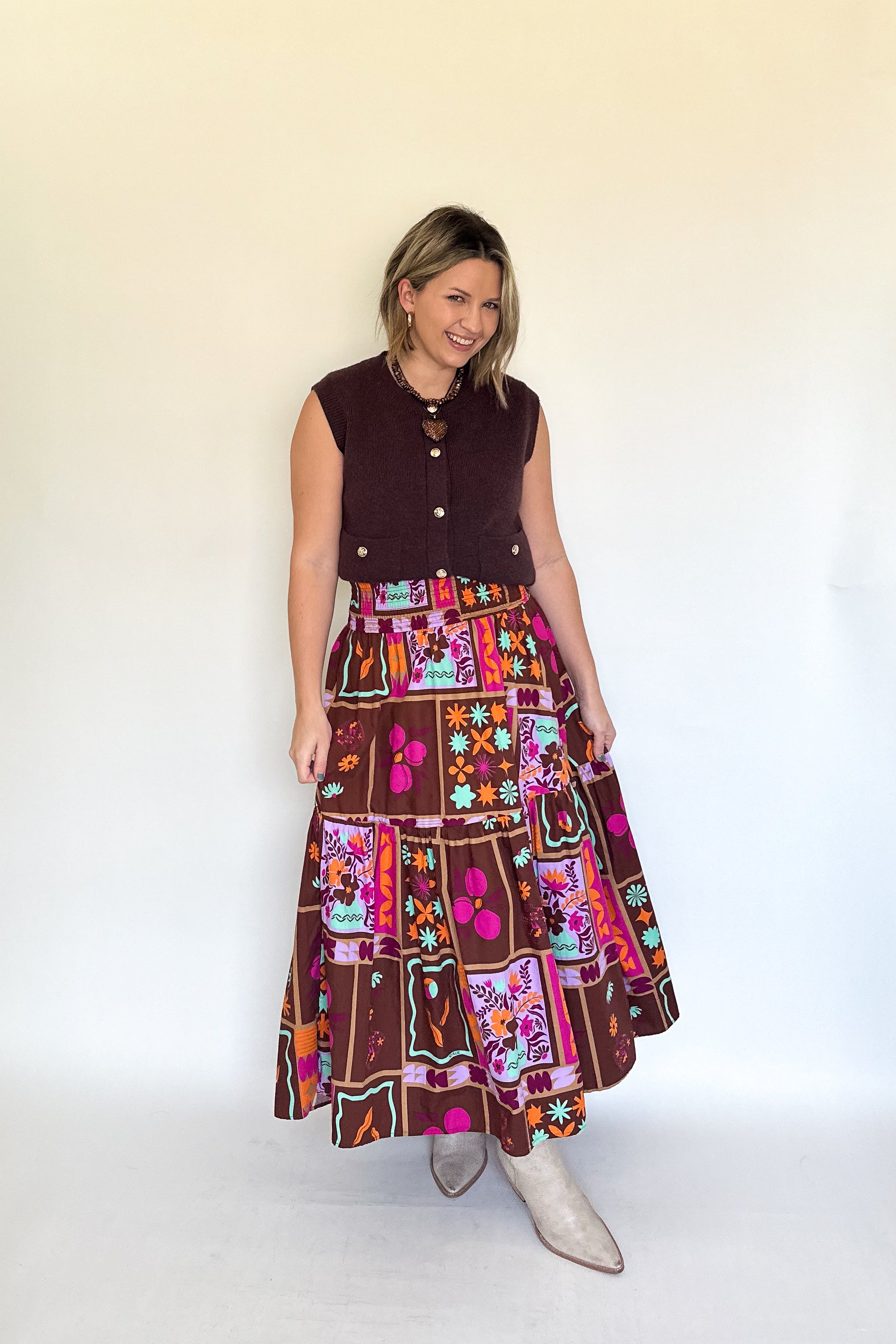 Floral Frame Smock Maxi Skirt By Karlie