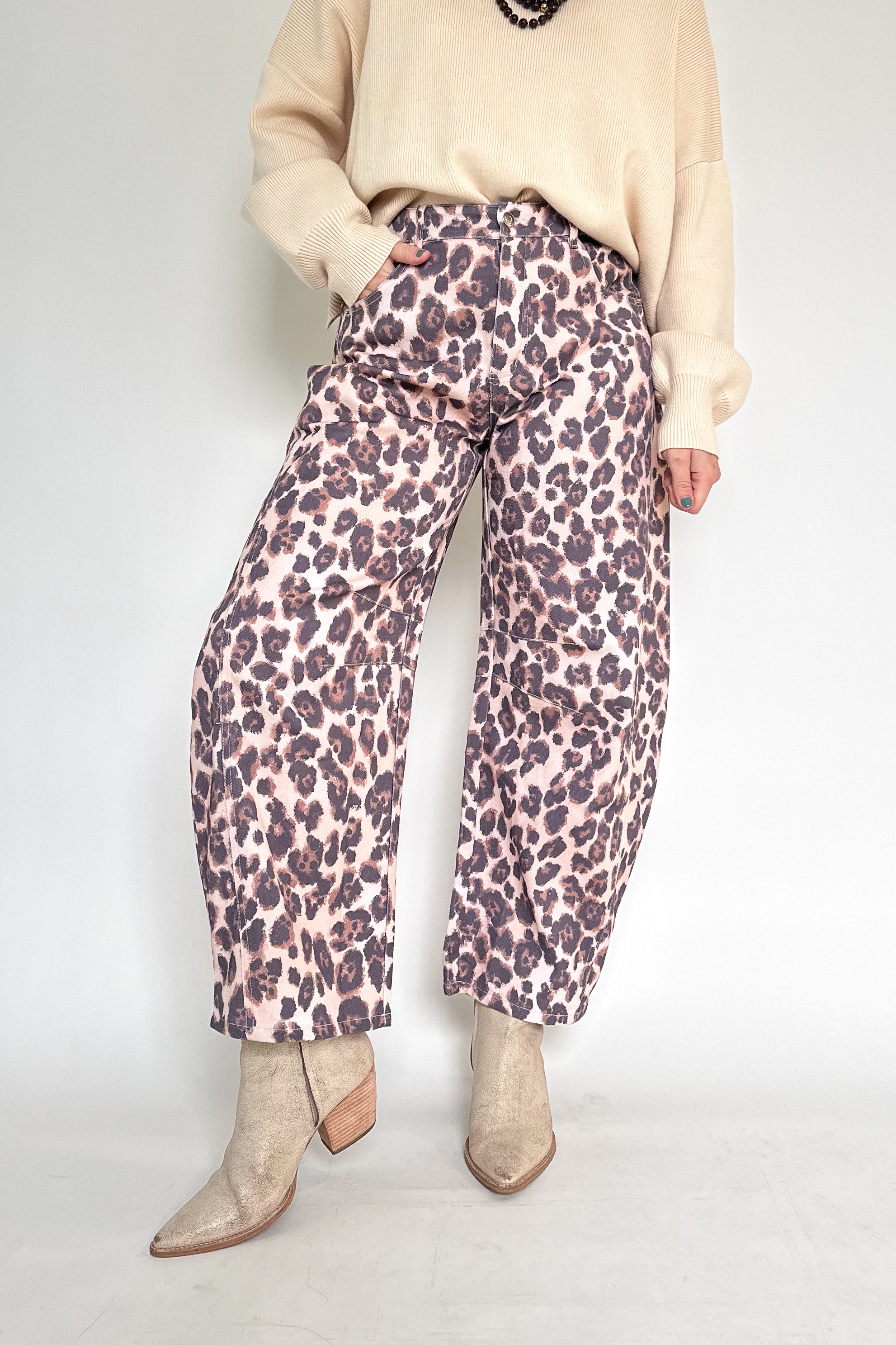 Leopard Denim Barrel Jean By Karlie
