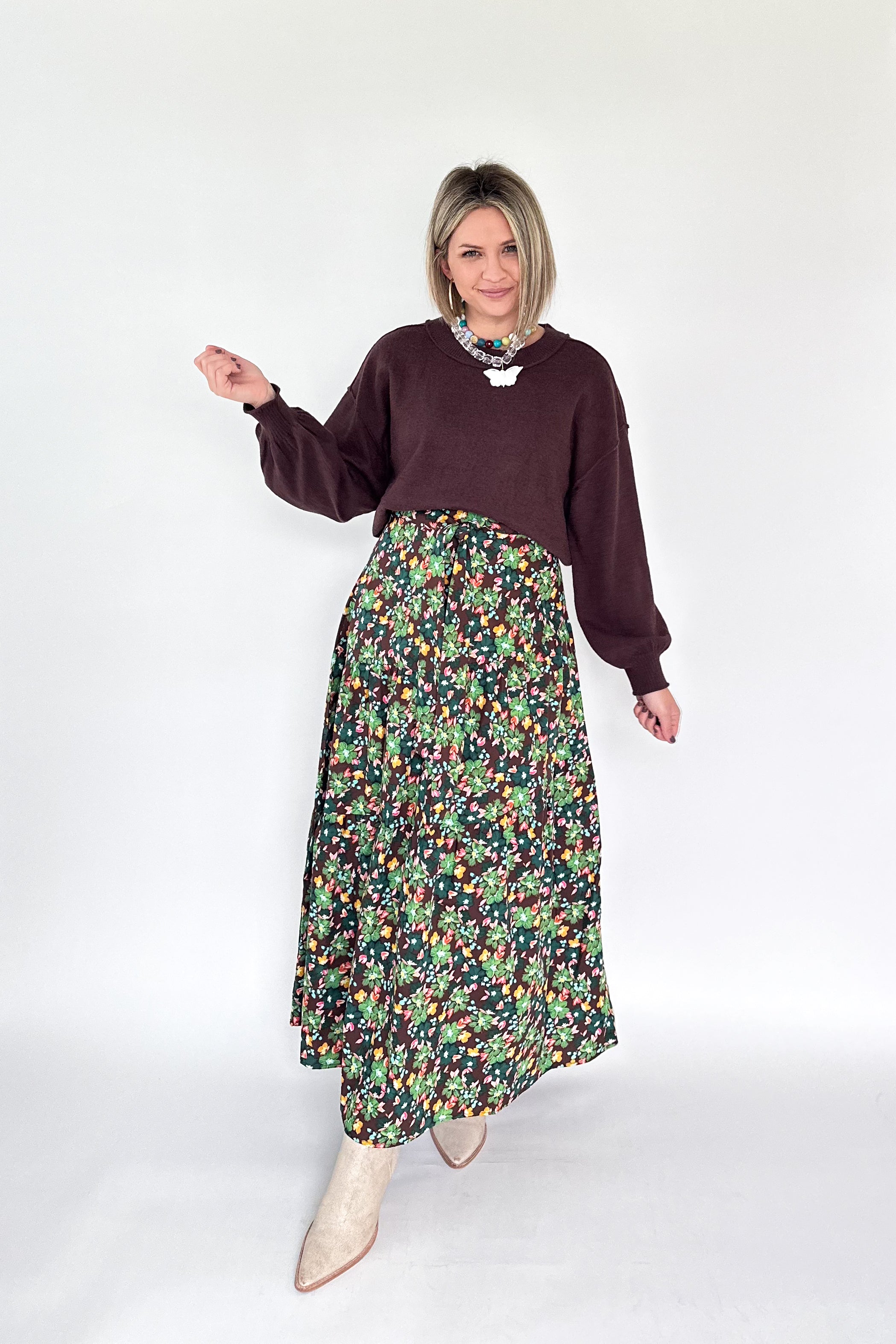The Petal Tie Maxi Skirt By Karlie