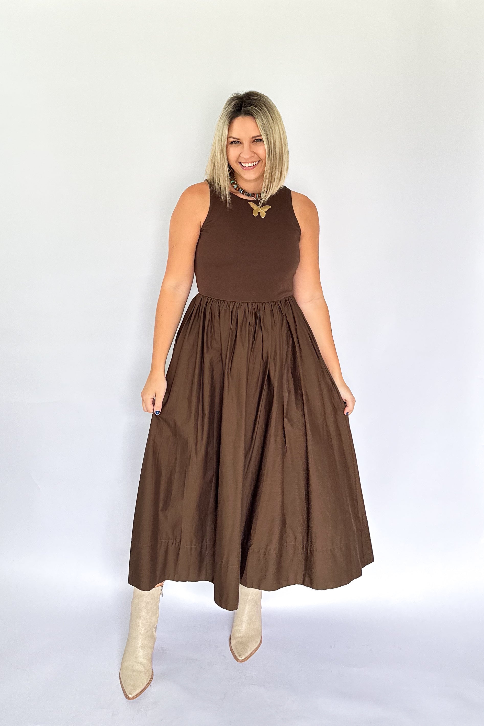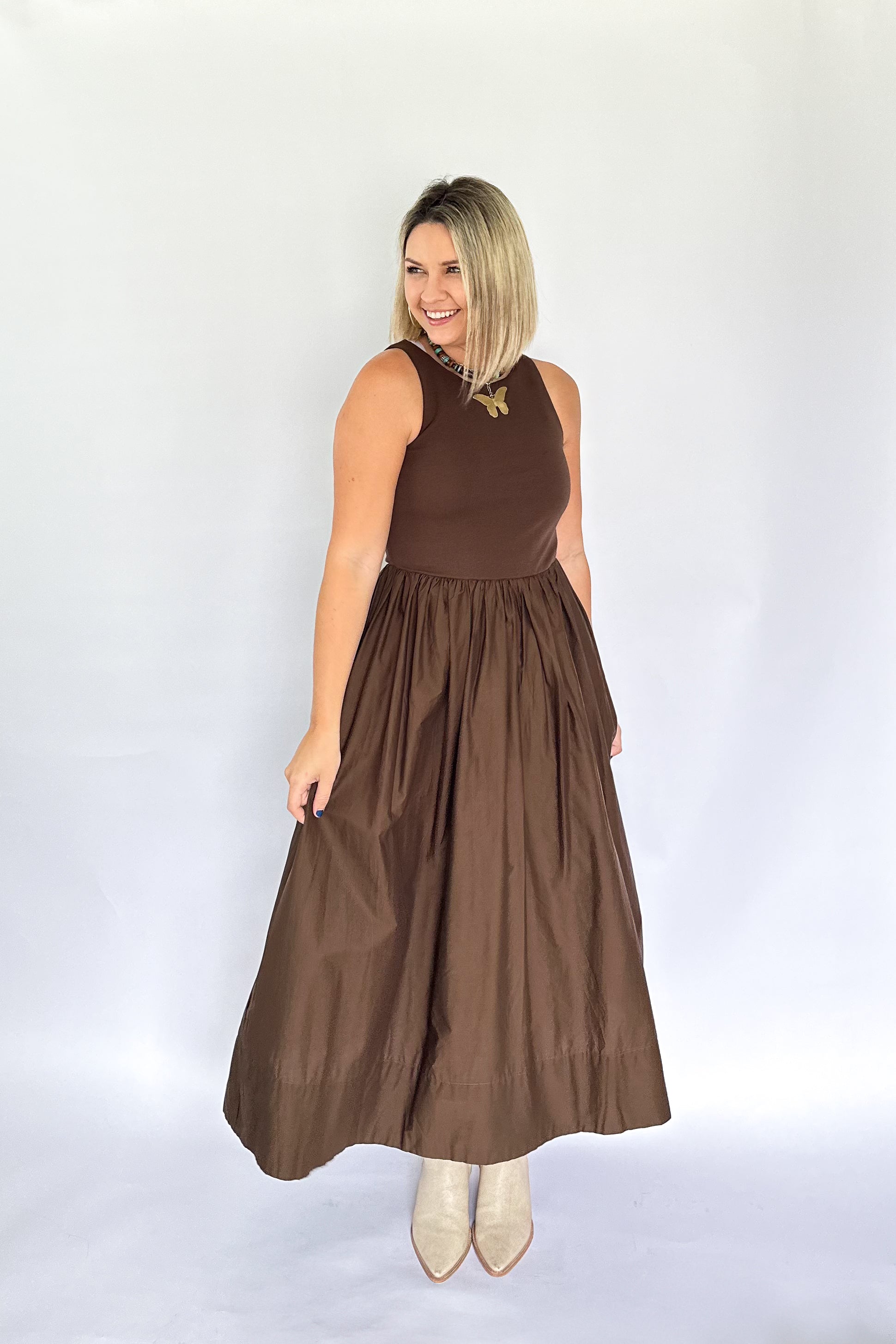 Lyon Midi Dress | Brown