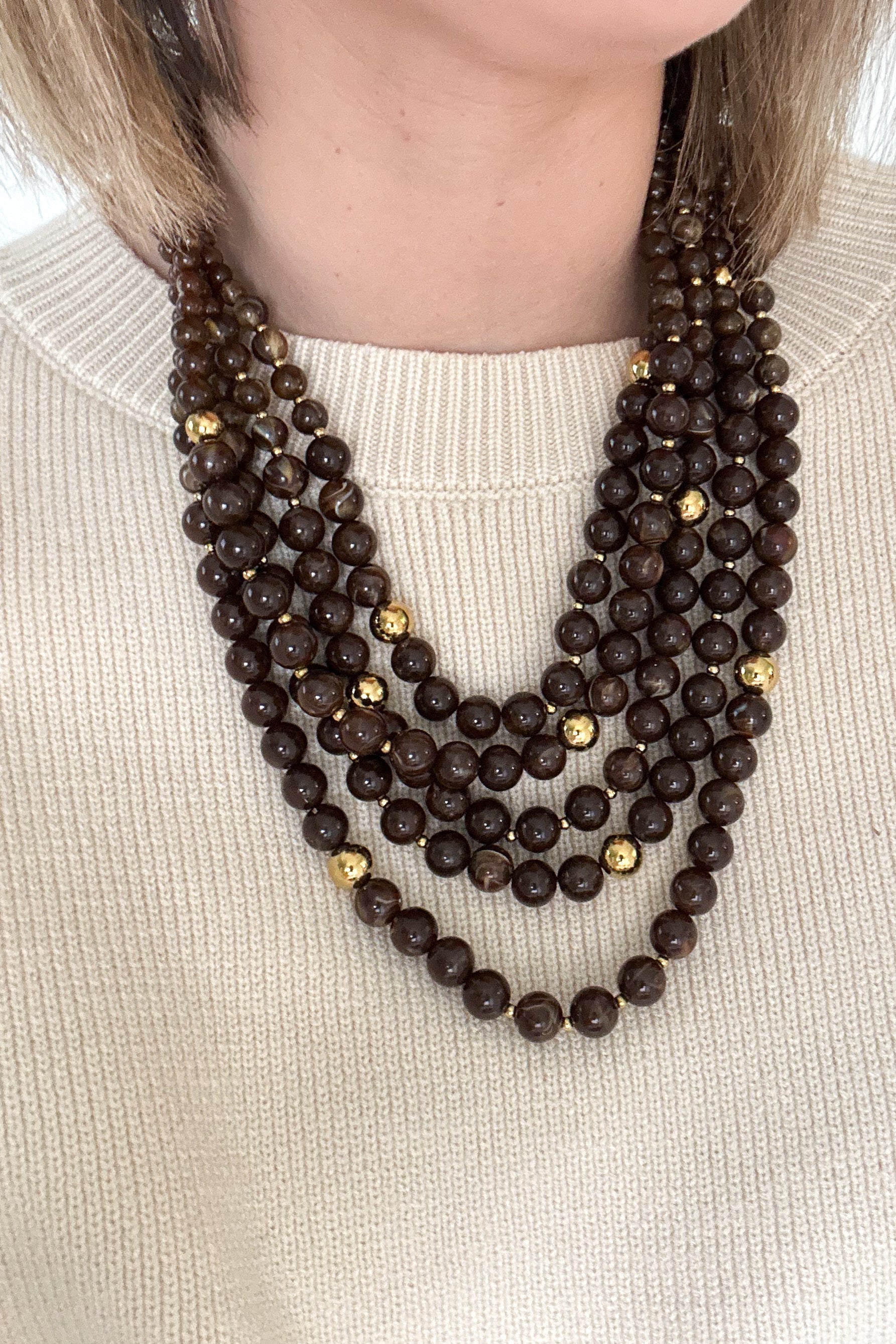 Layered Beaded Necklace | Brown