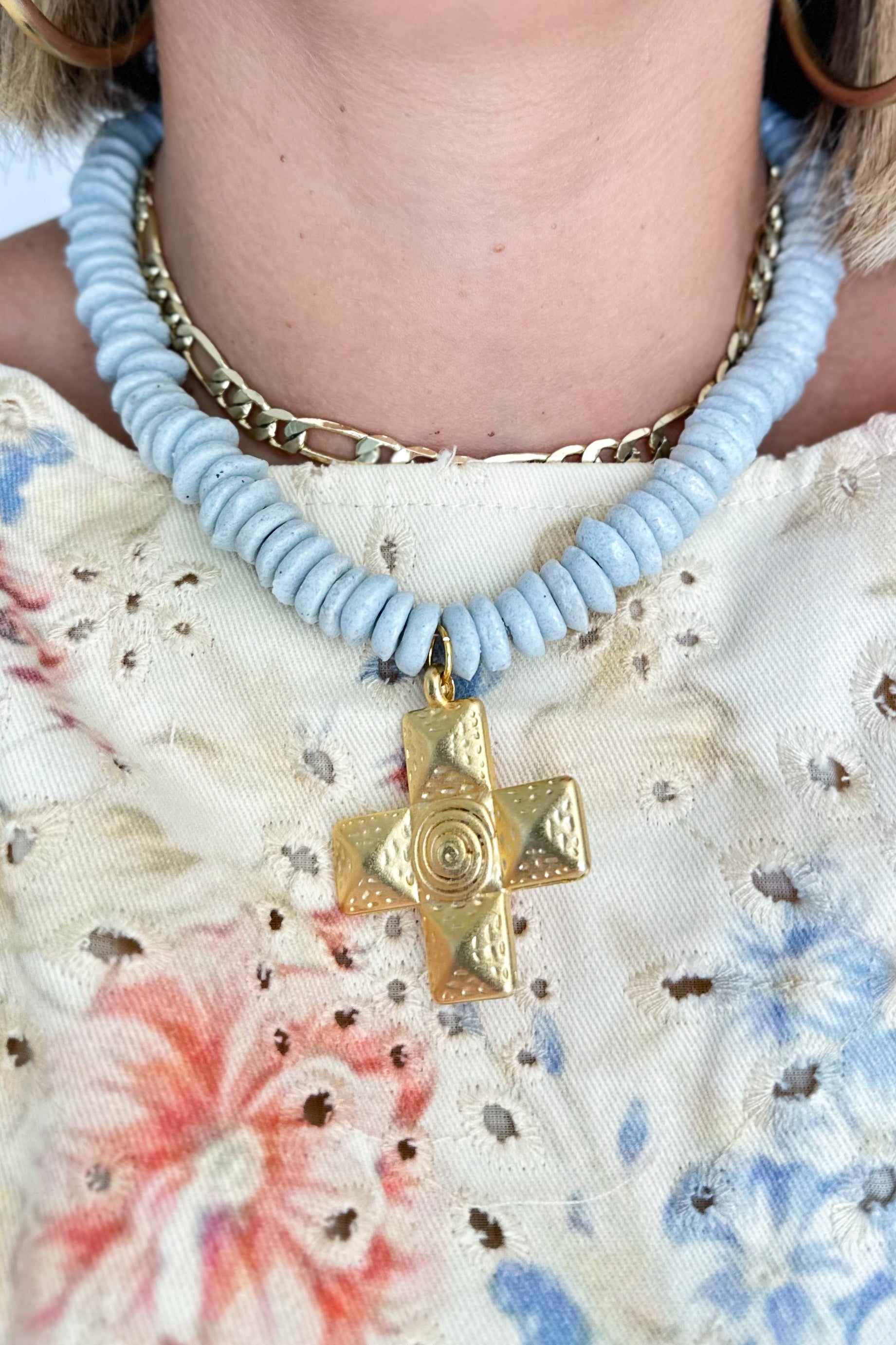 Disc Necklace with Cross | Blue