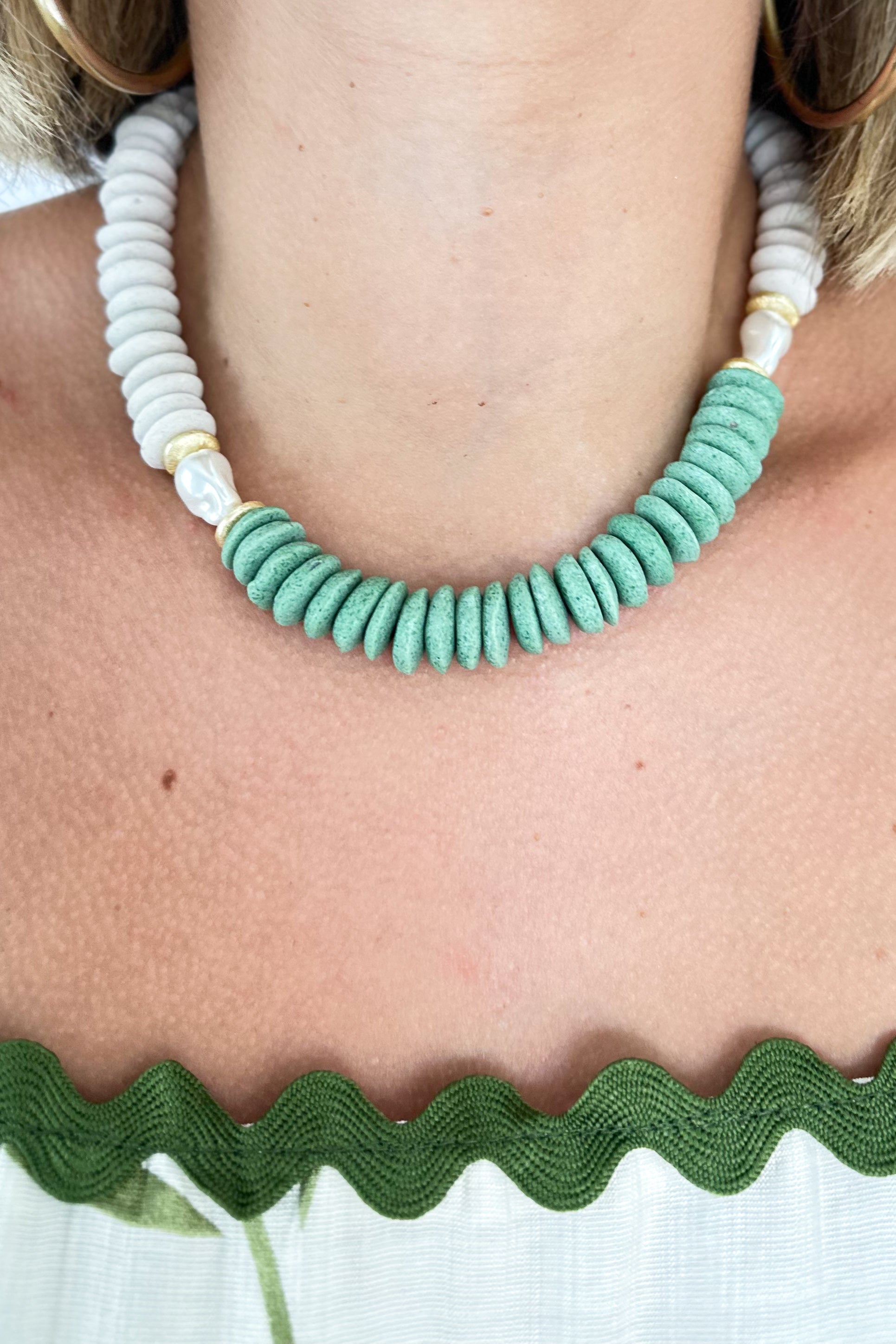 Disc + Pearl Necklace | Green Combo
