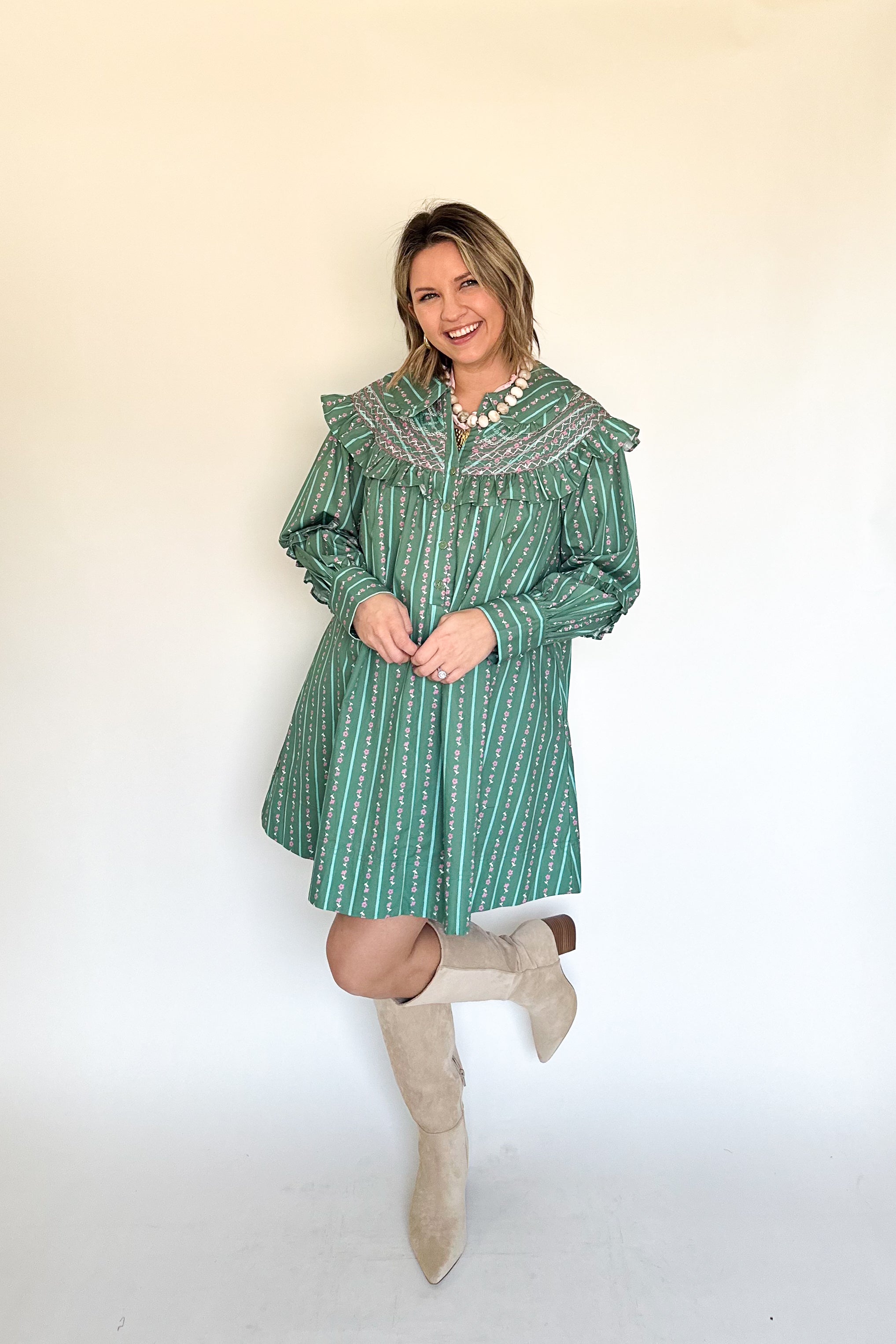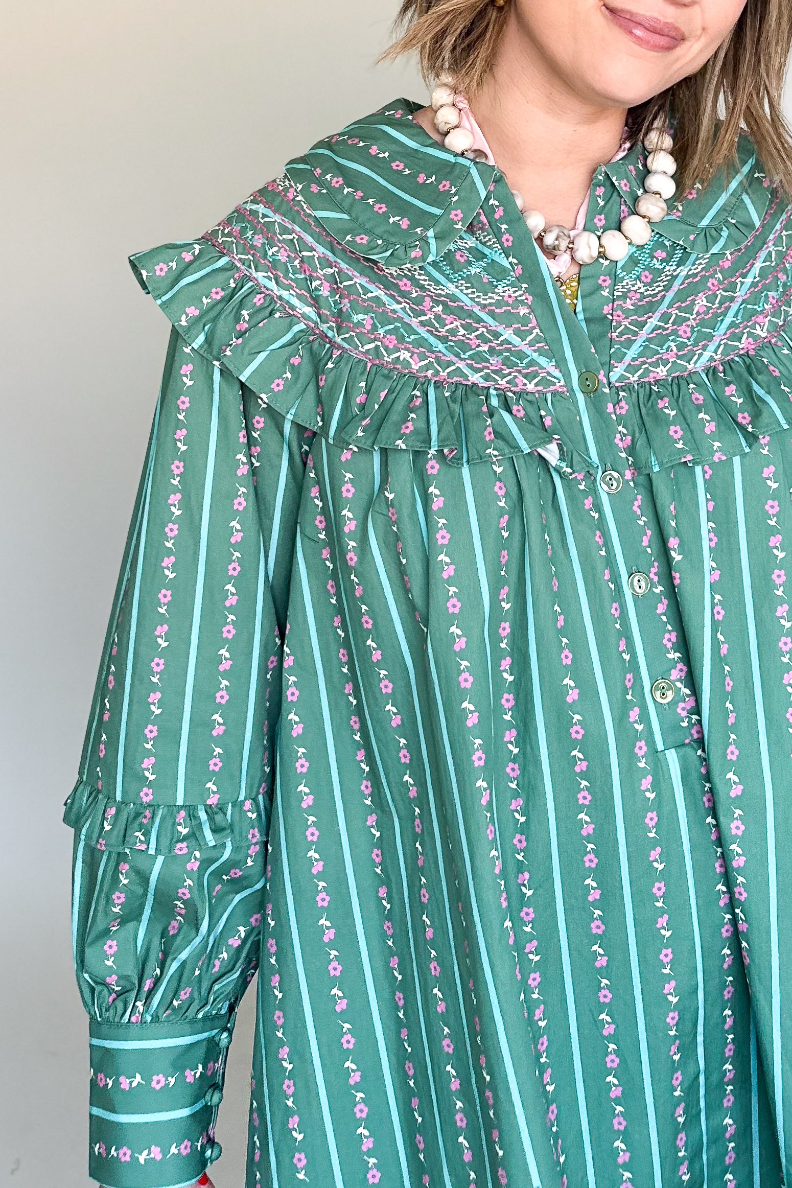 Floral Stripe Embroidered Peter Pan Dress By Karlie