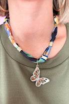 Meet your new statement piece. The Brenda Scarf Necklace by Gemelli blends boho texture with everyday glam. Featuring a luxurious scarf in ocean-inspired shades of blue, this versatile piece is accented with 18k gold-plated charms and spacers for a look that's both effortless and elevated. Style it your way – wear it as a necklace, wrap it as a bracelet, or tie it on your bag for a pop of personality. Designed in Dallas, Texas for the modern muse.